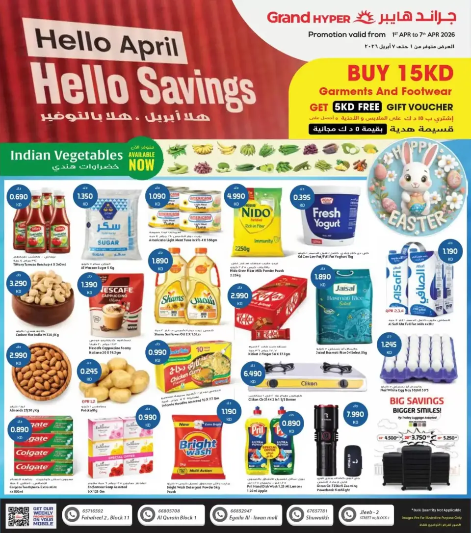 يتوفر هذا العرض لدى جراند هايبر ماركت الكويت في الفروع أو المواقع التالية: الفحيحيل، الشويخ، جليب، العقيلة، القرين.