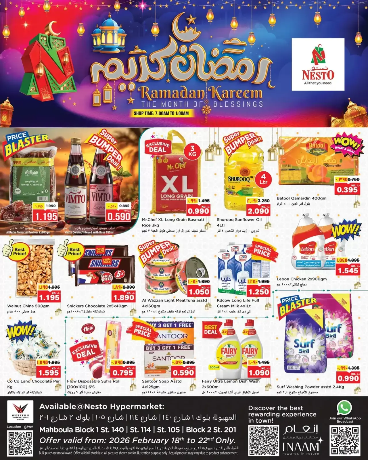 اكتشف أحدث عروض نستو هايبر ماركت في الكويت اليوم بفروع مهبولة وتصفح كاتالوج عروض رمضان كريم واستفد من أفضل الأسعار حتى 22 فبراير 2026.